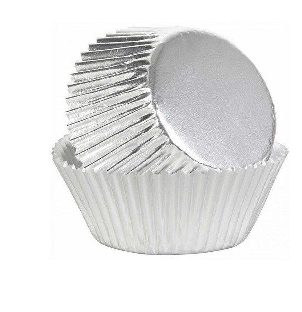 Papel encerado metalico Plateado, medidas: diámetro 5 cm diámetro superior 7 cm, altura 3.5 cm
