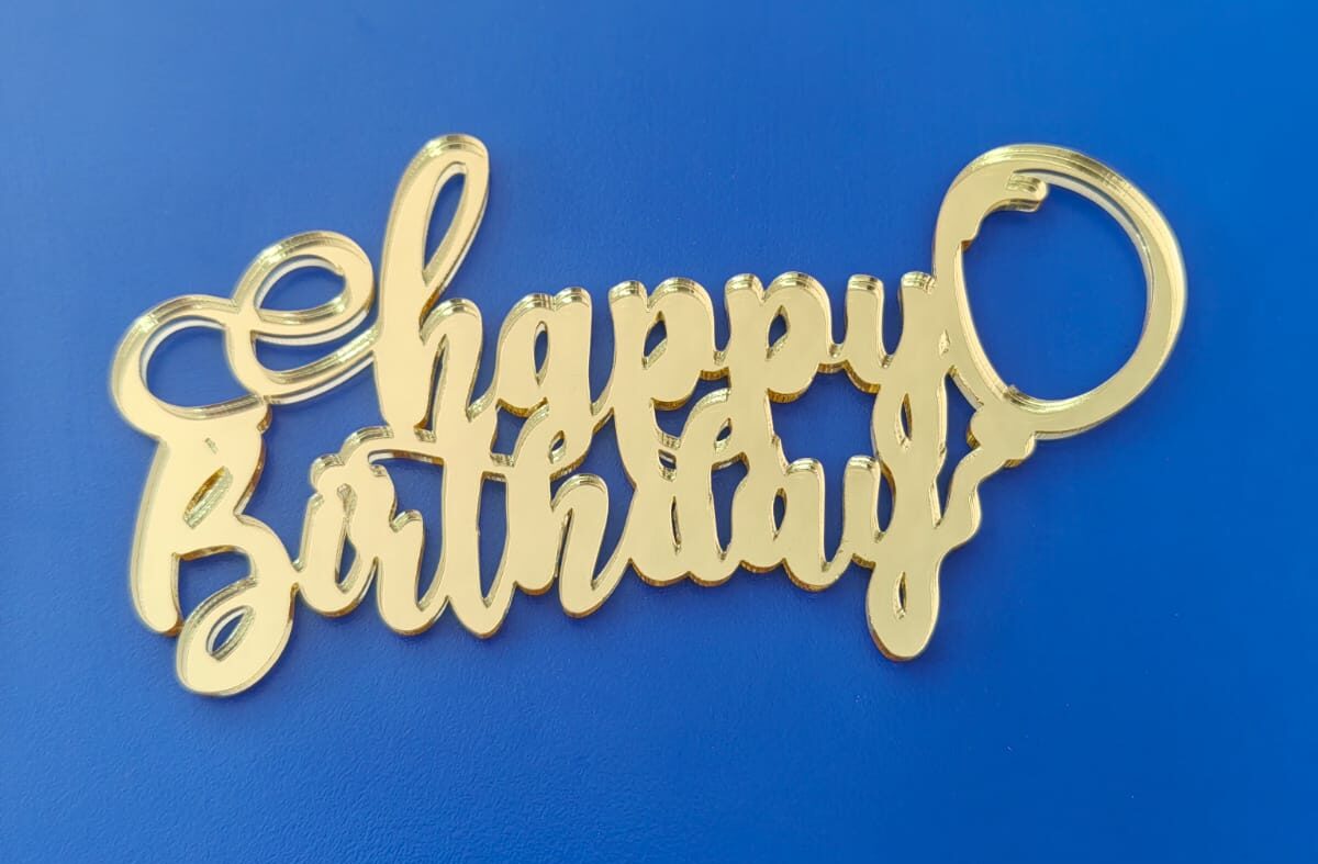 happy B letrero acrilico dorado 12 cm